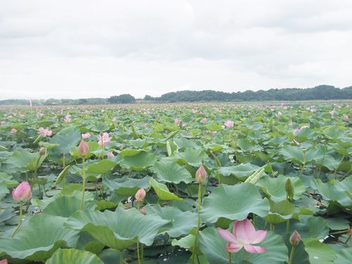 どこまでもどこまでも続いています。今年は例年より花が多いそうで、東京ドームの約10倍あるという伊豆沼の